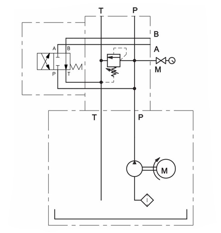 Станция укомплектована: всасывающим фильтром, шестеренным насосом, соединительными полумуфтами двигателя и насоса, колоколом с фланцем для установки электродвигателя и крепления насоса, перепускным предохранительным клапаном, фильтром в сливной линии, манометром с запорным краном, заливной горловиной с воздушным фильтром и визуальным индикатором уровня масла, 3-х фазным 4-х полюсным асинхронным электродвигателем модели B5-V1 согласно UNEL-MEC. Насосные станции работают на минеральном масле вязкостью от 10 до 400 сСт (не входит в комплект поставки).